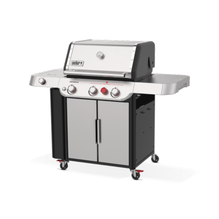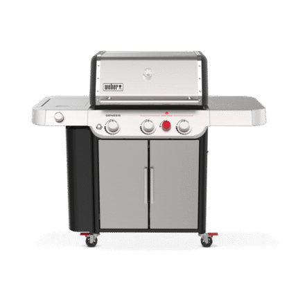 The 3-burner, porcelain-enamel Genesis E-335C, with extra-large sear zone and side burner, delivers legendary Weber quality, performance and durability in