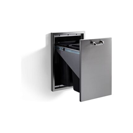Attractive convenience—concealed option with two receptacles for recycling and trash Stunning details—hand-polished mirrored highlights Elegant touch—Lynx Professional style door handle