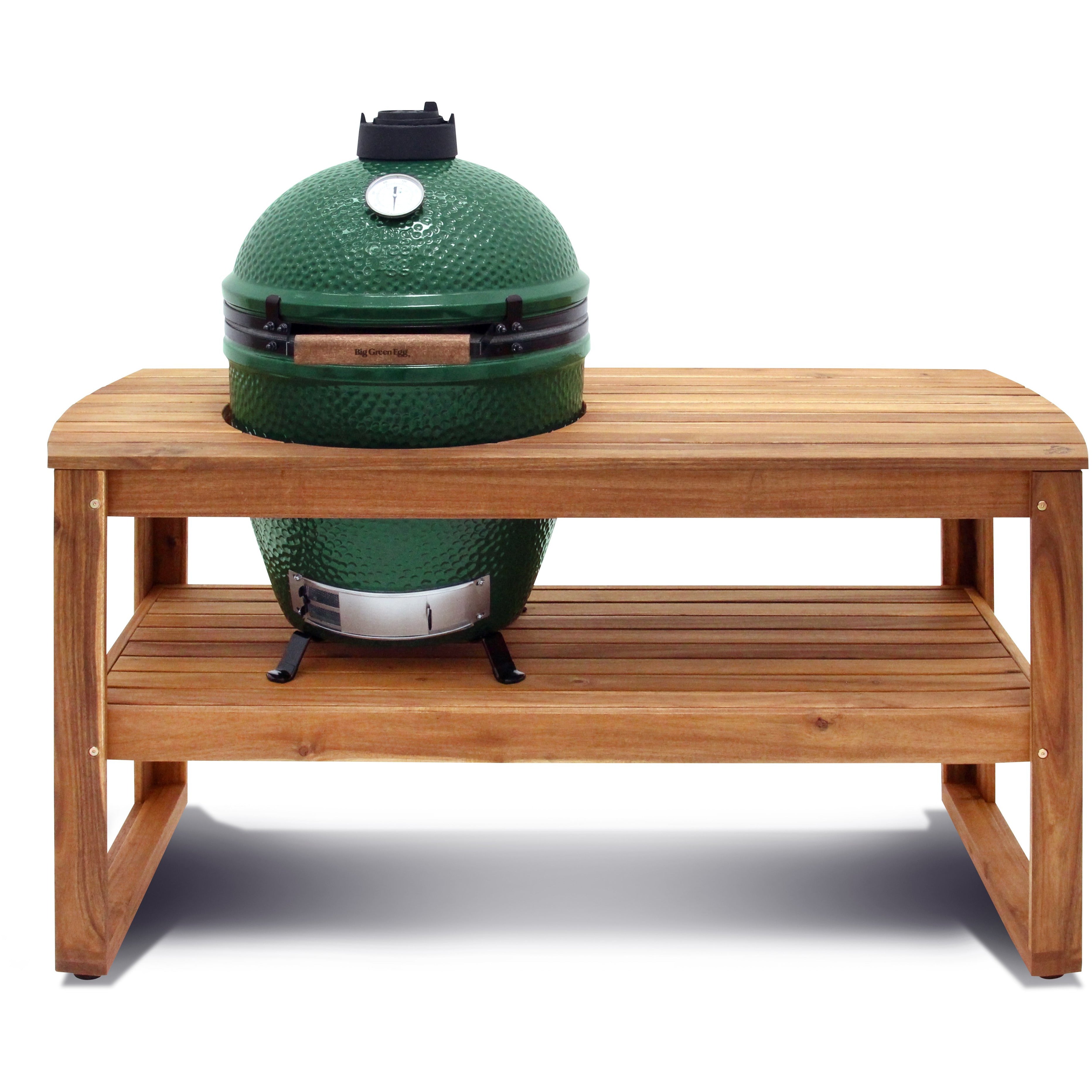 Big Green Egg Acacia Hardwood Tables are fabricated from all-natural, kiln-dried solid planks of genuine acacia wood, which is highly regarded for its excellent weathering characteristics.
