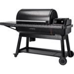 - Includes large powder-coated side shelf for prepping, resting meat, & more